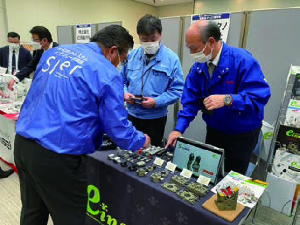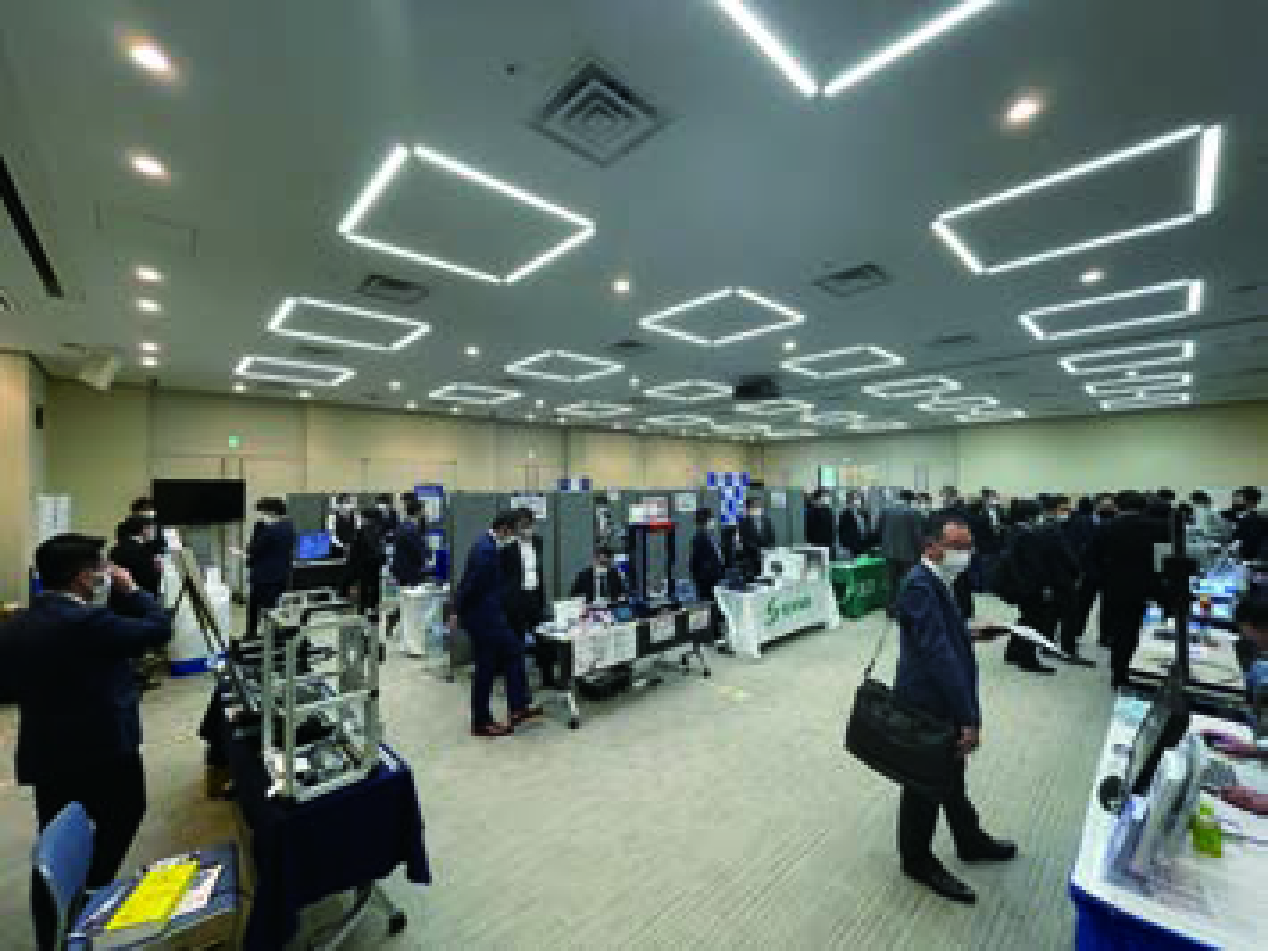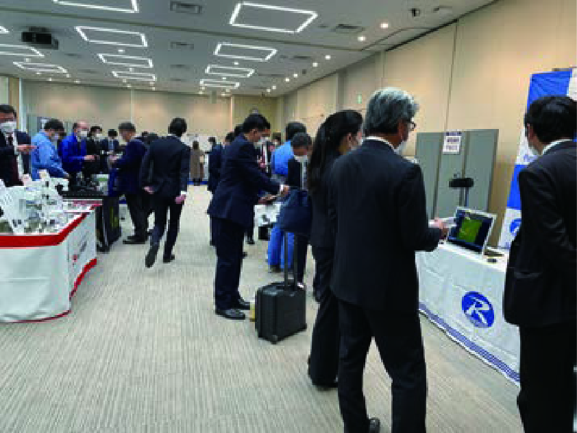 当初2月4日(金)に開催する予定で準備を進めてまいりましたが、感染者数拡大による蔓延防止重点措置の発出をうけ、3月23日(水)に延期したところ、無事に措置が解除となり開催することができました。広いホール内に実機展示ブースを設置、別室のプレゼン会場で順番にプレゼンテーションを行う形式とし、感染対策へも配慮しました。