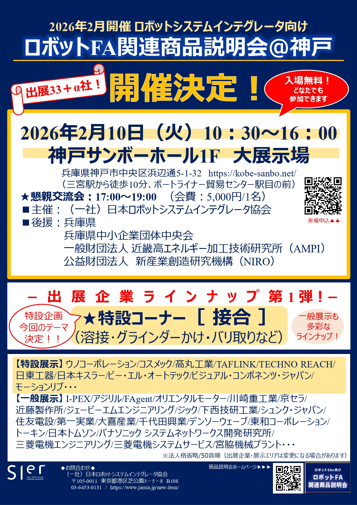 2025.11.172026年2月ロボットFA関連商品説明会@神戸来場者募集開始しました。